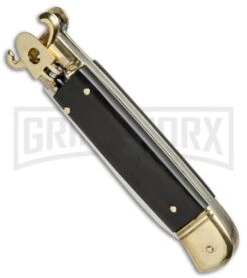 The AKC Mini Classic lever lock from Italy shows beautiful workmanship & style. This version sports a stag handle and a satin finished blade. Press the lever down and the knife opens automatically, then press again to release the blade and fold it closed. This is an excellent piece to begin or add to your Italian collection.