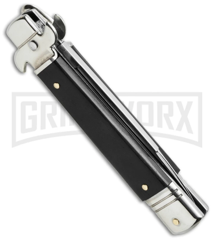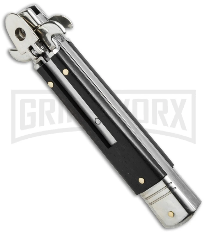 AKC 7.75″ Leverletto Ebony Wood Automatic Knife – Flat Grind