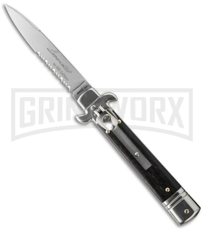AKC Bill DeShivs 7.5″ Leverletto Ebony Wood Automatic Knife – Flat Serr