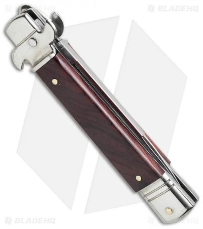 This 7.75″ Italian Stiletto from AKC comes in the Leverletto style with a cocobolo handle and a partially serrated blade. AKC specializes in collectible Italian stilettos made with traditional knife-making techniques. This 7.75″ Leverletto model has a cocobolo handle with a stainless steel bolster. Brass pins add a classic finishing touch to the design. The blade comes in a drop point style with a plain edge and a satin finish. Add classic Italian style to your collection with the AKC 7.75″ Leverletto stiletto.