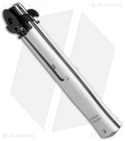 This 9″ Italian Stiletto from AKC comes in the Leverletto style with a silver aluminum handle and a flat grind blade. AKC specializes in collectible Italian stilettos made with traditional knife-making techniques. This Bill DeShiv’s designed Leverletto model has an aluminum handle with a stainless steel bolster. Satin finished pins add a classic finishing touch to the design. The blade comes in a drop point style with a plain edge and a satin finish. Add classic Italian style to your collection with the AKC 9″ Leverletto stiletto.