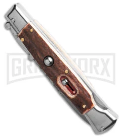 AKC Smarty Black Automatic Knife Reverse Tanto – Stonewash Plain