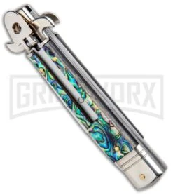 AKC 7.75″ Leverletto Dark Horn Automatic Knife – Satin Bayonet